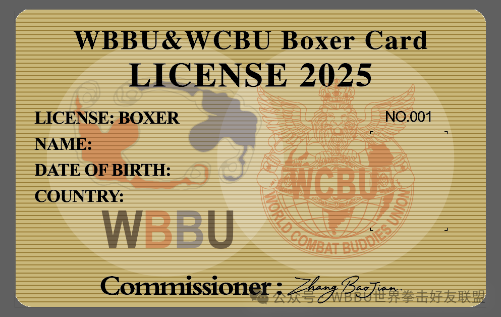 8、WBBU和WCBU致力于制定行业国际标准,注册卡与之契合,成为衡量拳手水平、规范赛事组织、推动行业发展的重要标杆。它引领拳手遵循国际通行规范,不断提升自我,接轨国际职业发展。